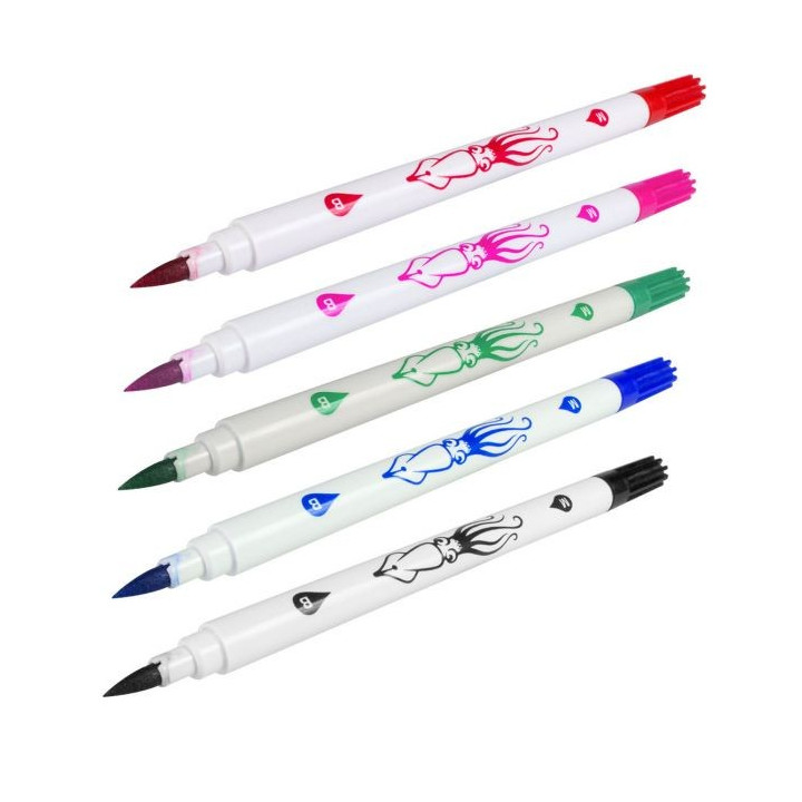 Les feutres pour la peau à deux embouts Squidster sont disponibles en noir, Bleu, Bleu claire, Vert, Rouge, Orange, Gris Fonce, Gris Clair, Jaune et Rose